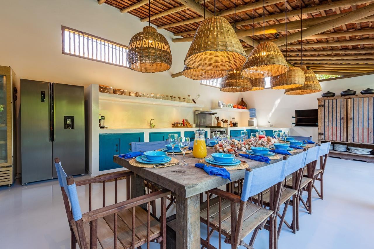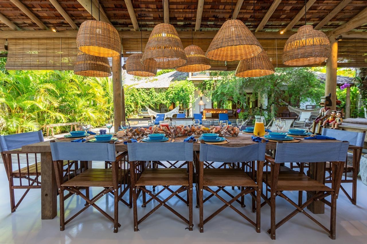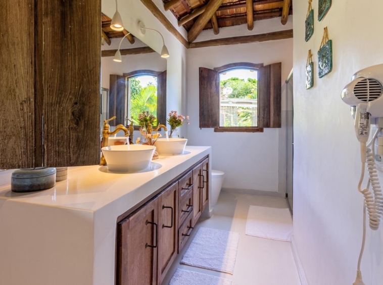 - Suíte 2 (piso superior): Varanda para o jardim, cama king-size e mosquiteiro.