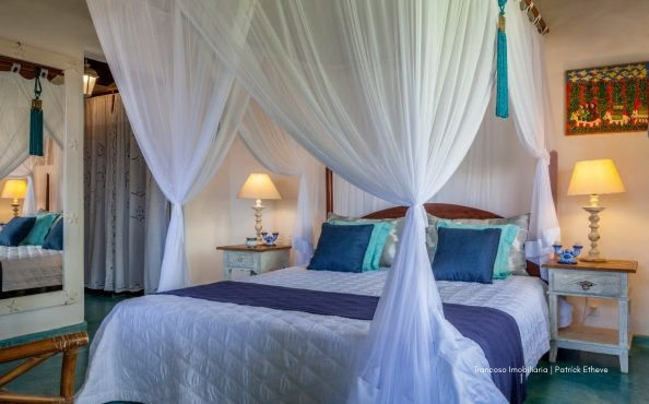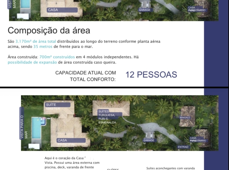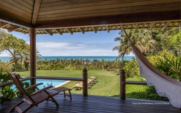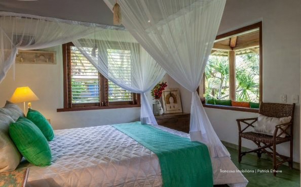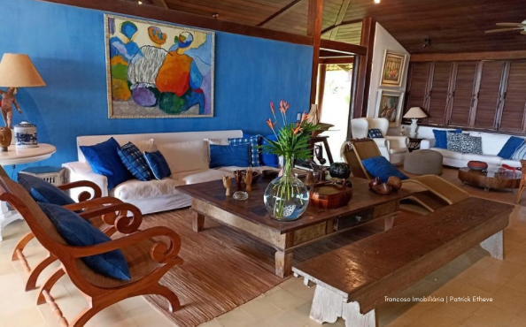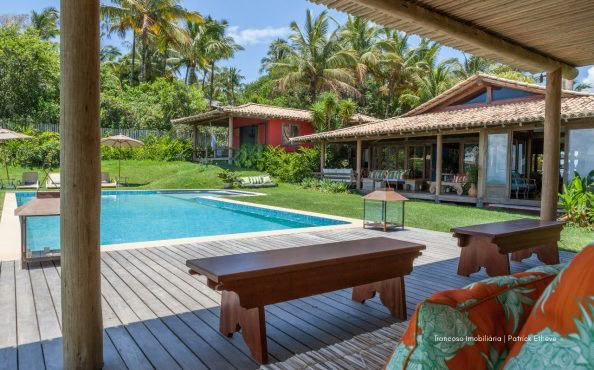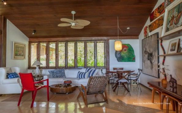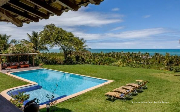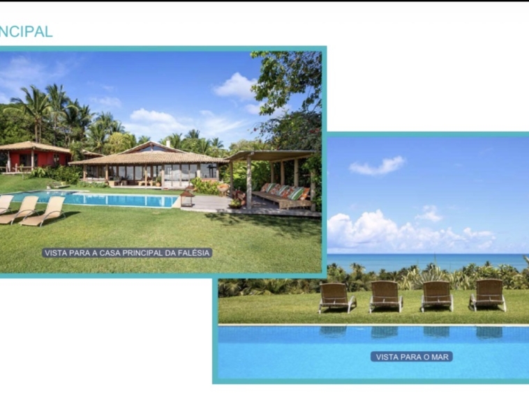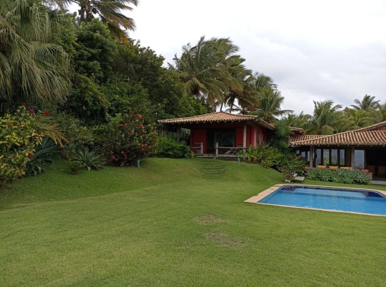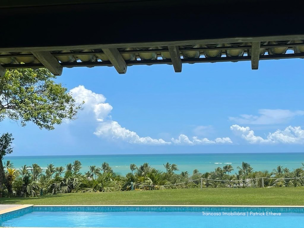 Casa de alto padrão com 700m² de área construída, localizada no topo de uma falésia com vista deslumbrante para o mar e acesso privativo à praia a apenas 200 metros. Situada em condomínio fechado com segurança 24h, entre duas das praias mais tranquilas de Trancoso.