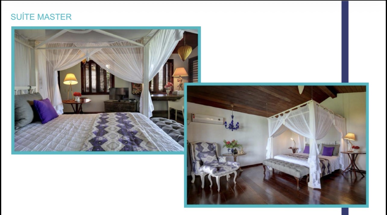 A decoração combina elegância e simplicidade, com obras e mobiliário de artistas brasileiros consagrados, como Zanini, criando uma atmosfera sofisticada e acolhedora. Todos os quartos possuem ar-condicionado, ventilador de teto e camas king-size com enxoval Trussardi.