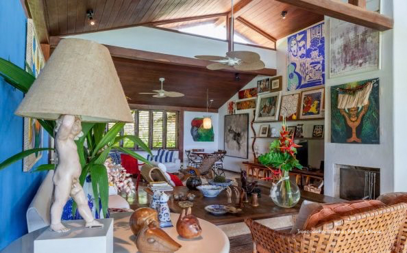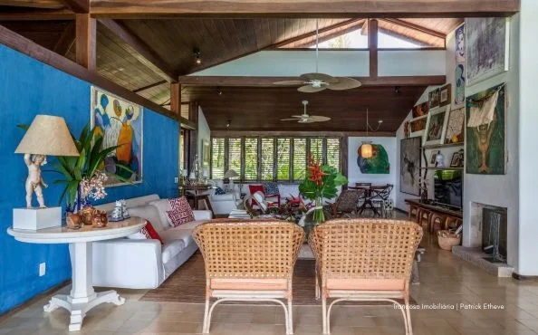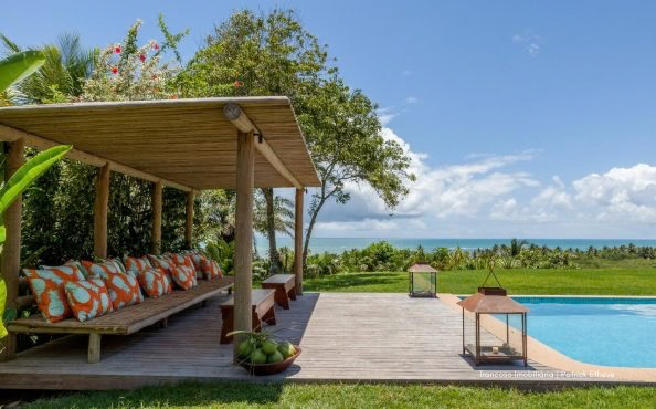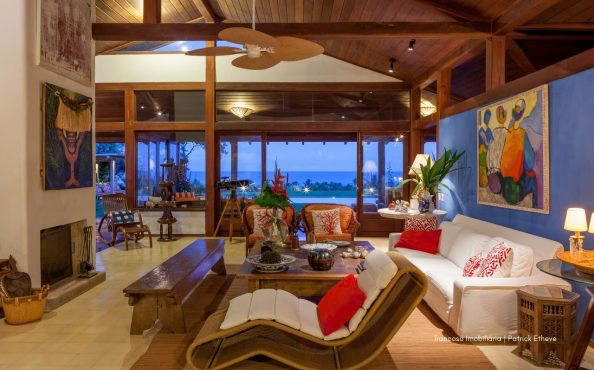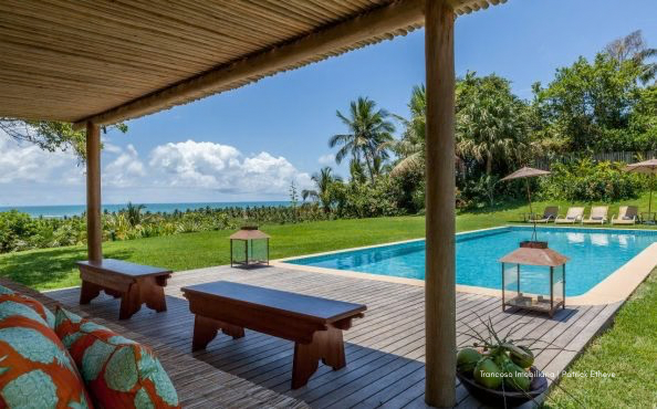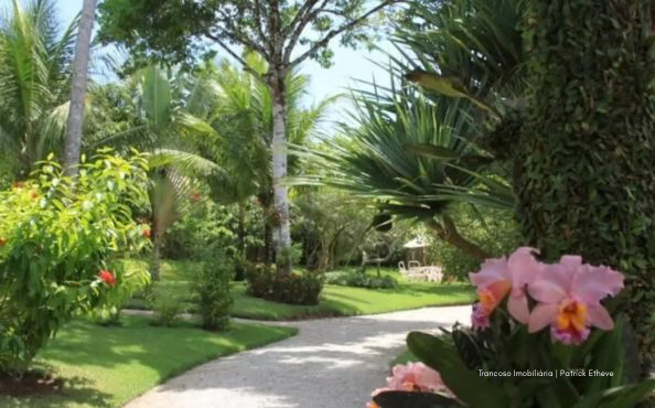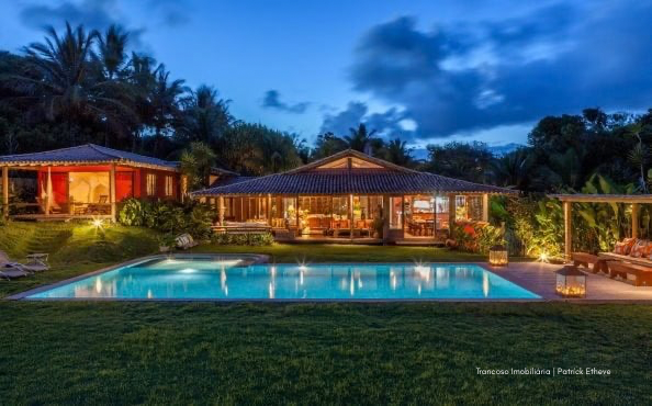O imóvel está em um terreno de 3.170m², oferecendo amplo espaço, jardim tropical assinado por paisagista renomada e piscina privativa de borda infinita com vista para o mar, cercada por coqueiros. A brisa natural circula por toda a casa, garantindo frescor mesmo nos dias mais quentes.