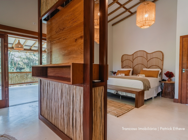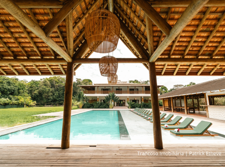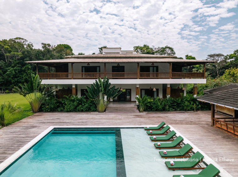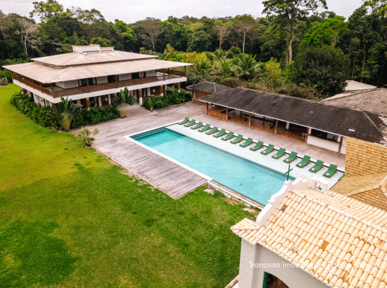 Casa de luxo recém-construída, situada em uma área de 90 mil m² de natureza preservada e mata nativa, garantindo total privacidade e uma conexão autêntica com o cenário exuberante de Trancoso.