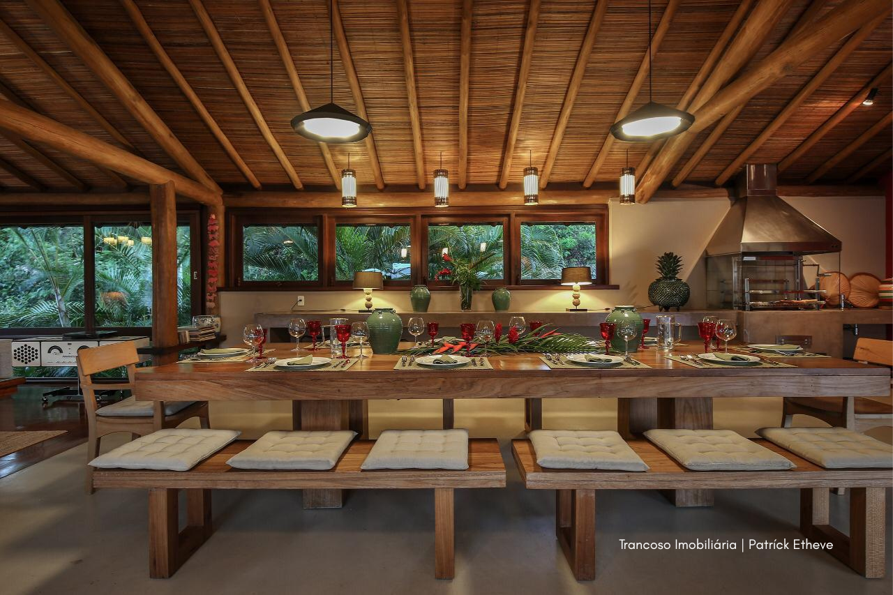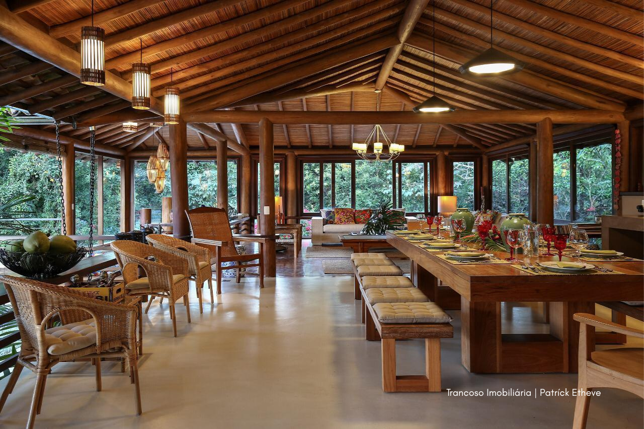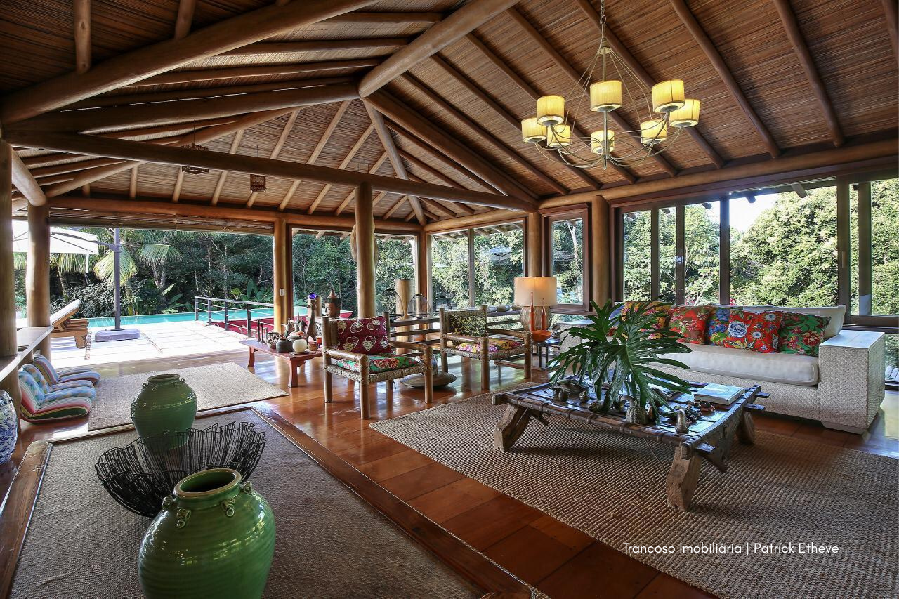 Em meio à Mata Atlântica preservada, esta casa exclusiva em Trancoso combina arquitetura rústica sofisticada, conforto e total privacidade. Assinada por arquiteta referência no estilo tradicional de Trancoso, é o cenário ideal para quem busca viver a região com autenticidade e alto padrão.