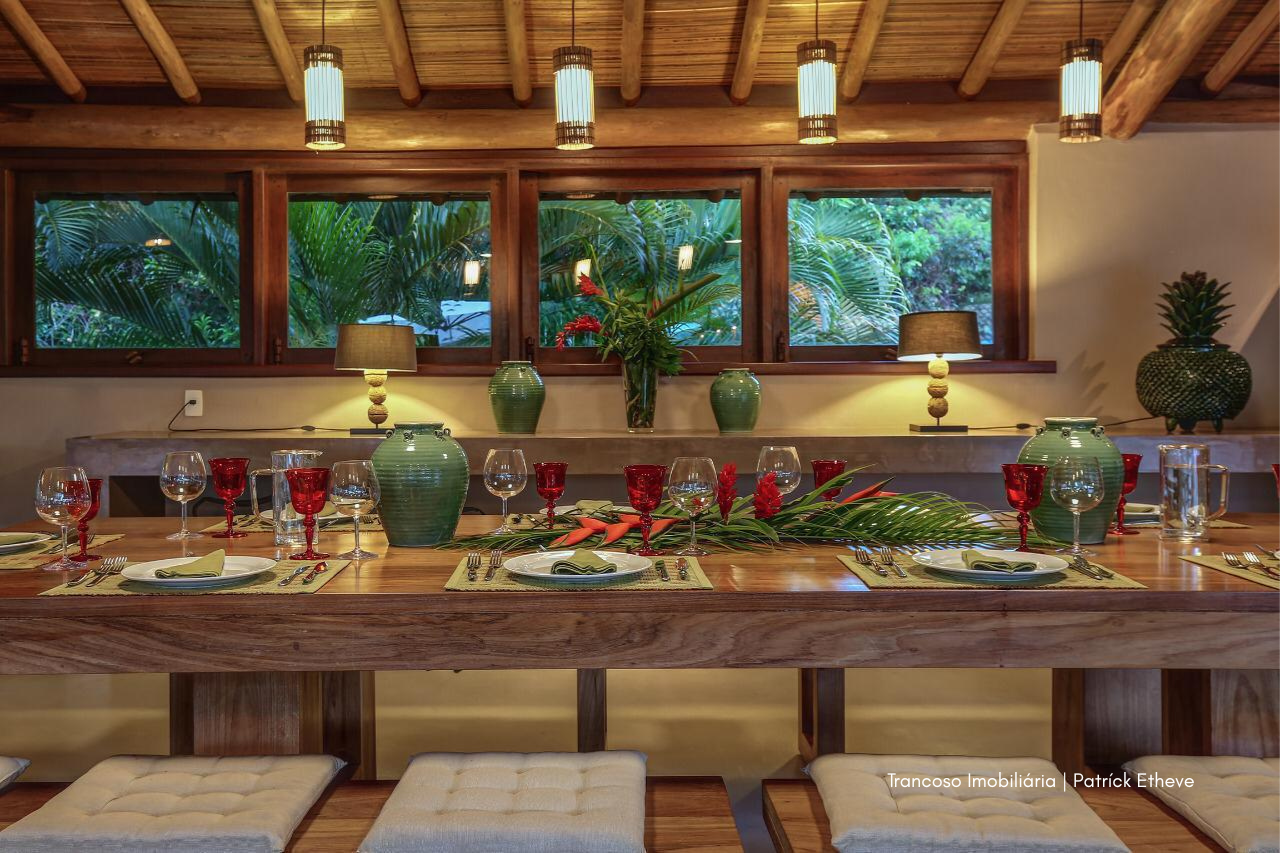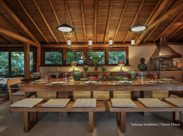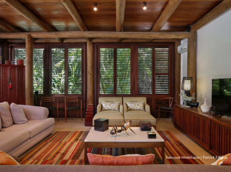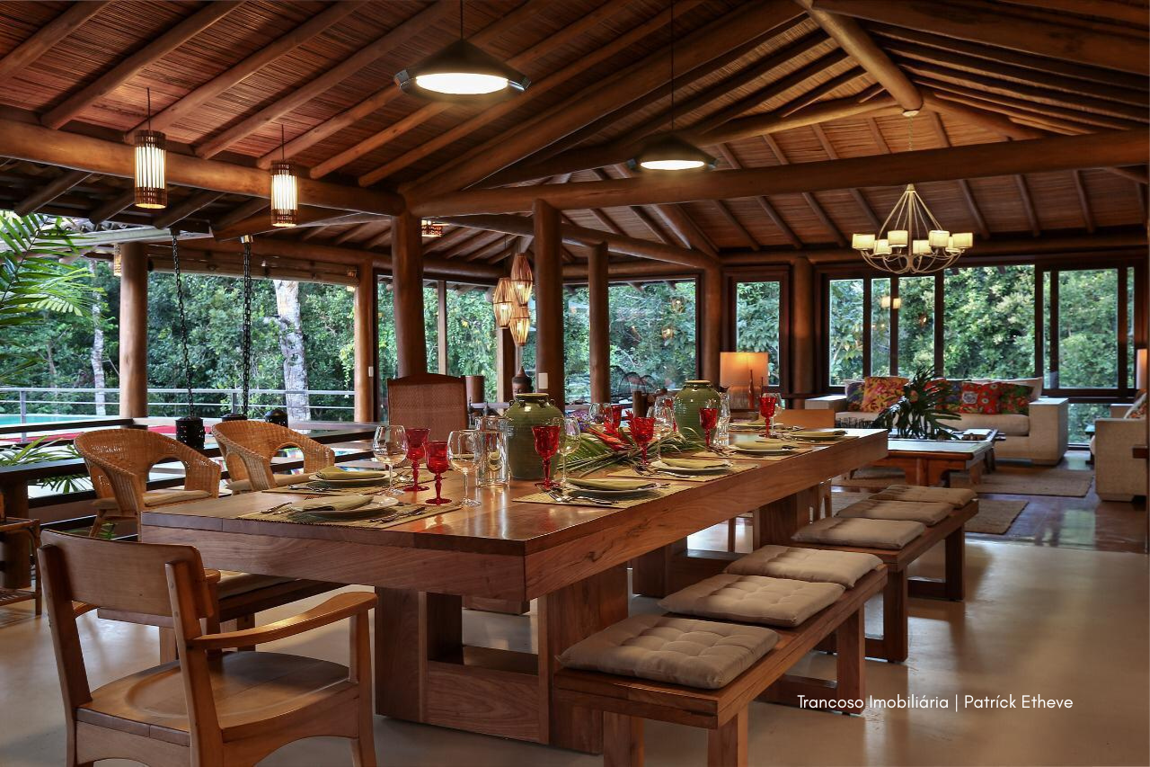 Em meio à Mata Atlântica preservada, esta casa exclusiva em Trancoso combina arquitetura rústica sofisticada, conforto e total privacidade. Assinada por arquiteta referência no estilo tradicional de Trancoso, é o cenário ideal para quem busca viver a região com autenticidade e alto padrão.